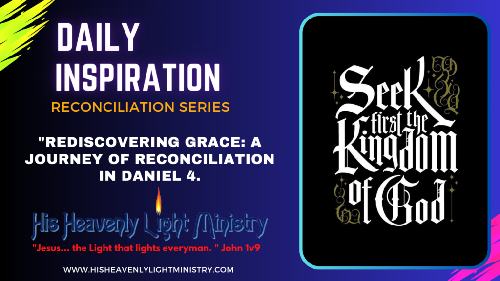 We come before you, humbled by the account of King Nebuchadnezzar’s journey towards reconciliation with You. May this passage inspire us to recognize our own need for humility and surrender to Your divine authority. We pray that, like Nebuchadnezzar, our hearts may be transformed, leading us to acknowledge Your sovereignty and seek reconciliation with You.